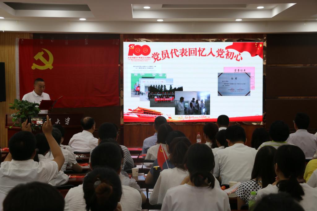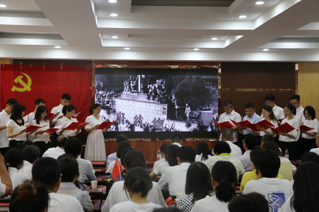 活动在党员代表配乐诗朗诵《党旗颂》中拉开序幕。14位党员师生饱含深情的朗诵,表达着对党的热爱和忠诚,使每位党员深刻认识到中国共产党是一个伟大、光荣、正确的党,党领导人民开辟的伟大道路、创造的伟大事业、取得的伟大成就来之不易。