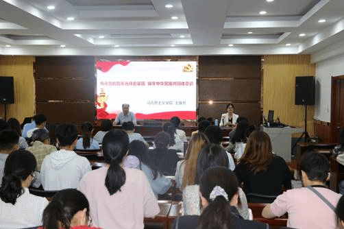 王换芳教授以“传承党的百年光辉史基因,铸牢中华民族共同体意识”为题,从“中华民族概念的历史演变”、“高度重视民族工作是贯穿中国共产党百年历史的红线”、“传承百年光辉史基因,增强铸牢中华民族共同体意识的政治自觉”三个方面进行了宣讲。王教授结合自身丰富的教学实践和理论研究,为老师们系统讲述了铸牢中华民族共同体意识的重要意义及践行要求。现场互动环节更是激发了师生的学习热情,不断将学习引向深入。与会人员纷纷表示讲座开展恰逢其时,铸牢中华民族共同体意识是维护祖国统一的必然要求、是促进民族团结的必然要求、是造福各族人民的必然要求、是民族复兴的必然要求,我们要深刻领悟铸牢中华民族共同体意识的重大意义,要将铸牢中华民族共同体意识融入日常工作学习中。