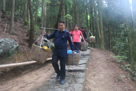 在体验教学环节,大家挑起扁担,怀着无比崇敬的心情,重走当年的红军挑粮小道。挑粮小道难行,难在路程遥远,难在山路崎岖,难在路无屏障危险重重,难在坡陡而毫无平地可歇。大雨倾泻,身临其境,大家深切感受到了当年红军战士不畏艰难困苦,不怕流血牺牲的英雄气概,受到了生动的革命传统教育和心灵洗礼,对井冈山精神的认识得到进一步升华。