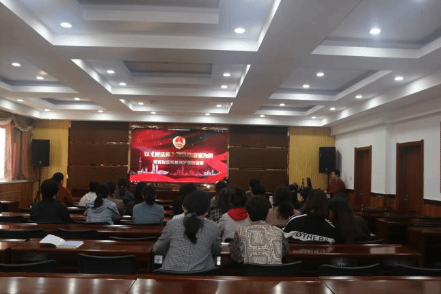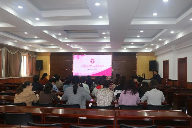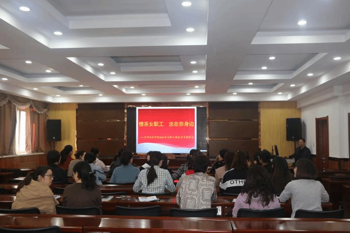 在知本楼二楼报告厅组织全体女职工开展了2021年女职工维权月“情系女职工 法在你身边”专题学习。