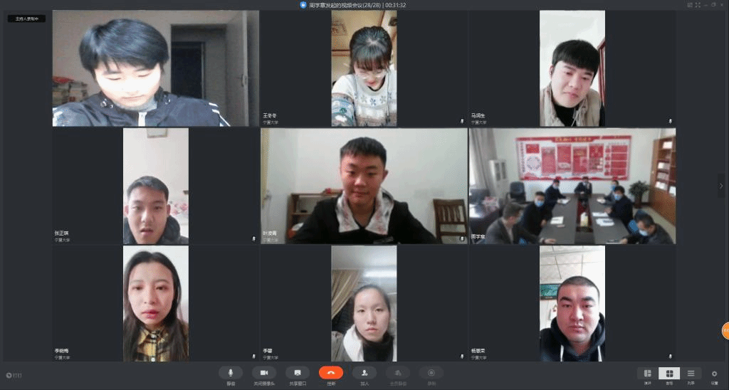 2018级生命科学类2班“共抗疫情、爱国力行”线上主题班会现场,看望慰问他联系的班级同学。学院党政领导参加主题班会,会议由班主任周学章主持。