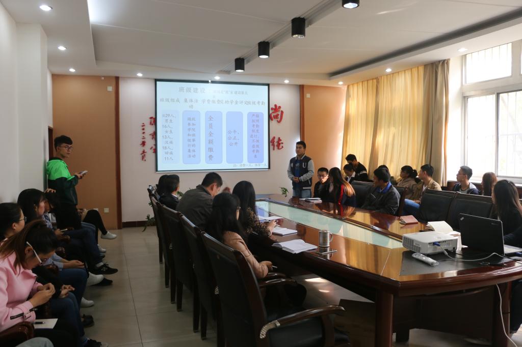 各班从班级建设、党团建设、学风建设、公寓建设、安全管理等五个方面进行了详细的汇报,在充分展示了各班的特色、亮点的同时,也剖析了存在的问题。之后,团委学生会代表从各班在主体团日活动、党员发展、志愿服务活动、纪律、挂课、宿舍卫生等各方面的表现做了详细的汇报。