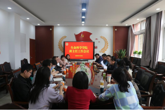 在知本楼112室召开班主任工作会议。会议由学院党总支书记邓光存主持,院长苏建宇和各年级班主任参加了会议。