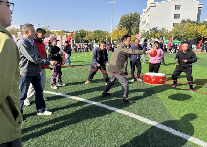 上午的团体赛项目中,学院教师团结协作、奋勇争先,在“合力建塔”“托球竞走”“蒙眼吃香蕉”等环节中密切配合,展现出蓬勃朝气与集体智慧。现场气氛热烈,掌声与欢笑不断,充分体现了“全民健身+校园文化”融合推进的生动实践。