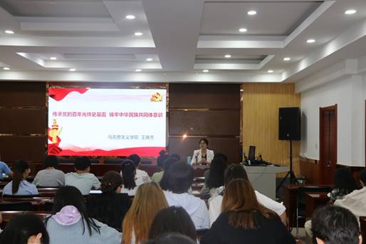马克思主义学院王换芳教授为全体教师及学生党员代表进行了铸牢中华民族共同体意识专题宣讲报告。报告会由学院党委副书记梁文裕同志主持。