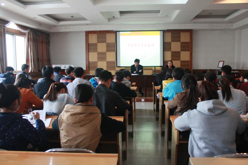 10月28日下午,学院邀请校党委组织部副部长、学生党建办公室主任——奥海玮老师在学院二楼报告厅,为第十四期入党积极分子培训班学员作了“中国梦与党的建设”的专题报告。