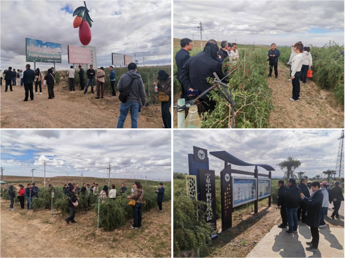 大家先后参观了杞鑫枸杞苗木专业合作500亩优质枸杞苗木培育基地,1300亩中宁县优质枸杞苗木快繁基地和学院4位教授参与共建的宁夏中宁枸杞科技小院,通过企业技术人员现场讲解、实地参观、品种对比、观看展板等活动,详细了解了宁夏枸杞的种植历史,枸杞产业发展现状及面临的突出问题。企业负责人特别强调,宁夏中宁枸杞科技小院的各位专家教授在企业发展中发挥了重要的科技支撑作用。参观的各位老师纷纷表示,要围绕宁夏“六新六特六优+N”产业高质量发展战略部署,发挥高校科研优势,助推宁夏经济建设。