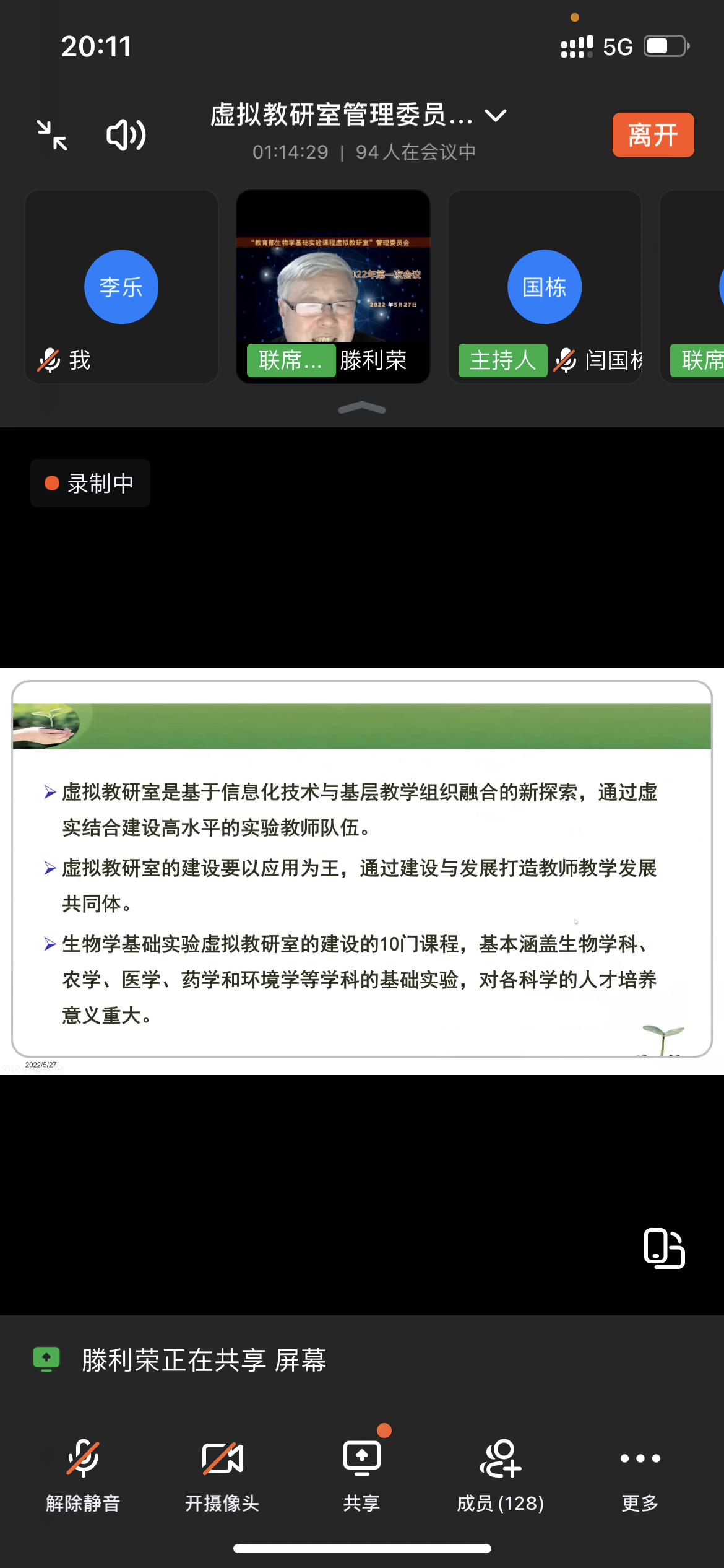 5月27日,生物学基础实验课程虚拟教研室召开管理委员会2022年第一次会议,会议决定在我校生命科学学院设置“教育部生物学基础实验课程虚拟教研室宁夏大学生命科学学院分教研室”,剧情色情片 副院长李乐担任分教研室主任并当选教育部生物学基础实验课程虚拟教研室管理委员会委员。