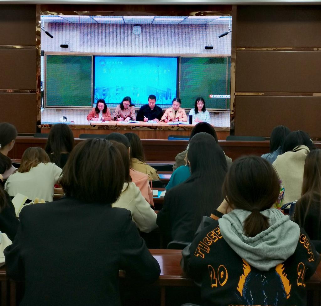文萃校区知本楼报告厅观摩网络直播。
