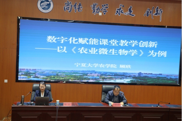 顾欣教授主讲的《农业微生物学》课程是自治区首批确认的一流本科课程(线上线下混合式课程)。报告会上,顾欣教授以该课程为例,介绍了数字化时代背景下推进课堂教学过程数字化的思考、实践及感受。她提出,在课程教学过程数字化的实践中,需要转变教学理念、改革教学模式、创新教学方法,以课程思政引领教学内容的更新,体现教学管理中思政元素、多学科知识、经典与前沿、理论与实践的融合,同时采用五个视角的多元教学反馈评价体系,最终形成“基于翻转课堂的三阶四融五评混合式教学模式”,落实了“学生主体,教师主导”的课程教学理念。