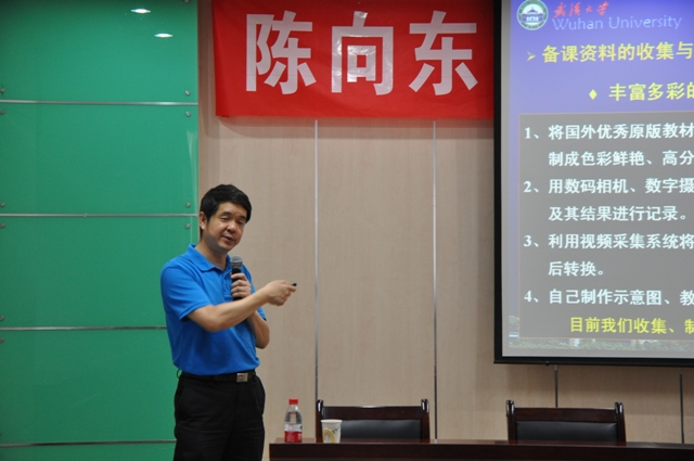 陈向东教授以国家精品资源共享课的建设为主线,从教学队伍,教学内容,教学条件,教学方法与教学手段,教学效果,特色、政策支持及辐射共享等七个方面系统介绍了武汉大学在微生物学国家精品资源共享课建设中的一些做法与体会。参加报告会的教师围绕报告内容与陈向东教授进行了深入探讨和交流,陈向东教授结合自己的教学经验与体会,对老师提出的问题做了认真细致的解答。