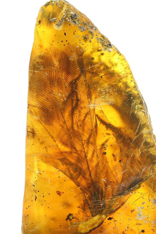 “此次,我们描述的古鸟类琥珀珀体很大,约9厘米长,容纳了接近完整的一只古鸟类的头部、颈椎、翅膀、脚部和尾部,以及大量相关的软组织和皮肤结构。”论文的作者之一,美国洛杉矶自然史博物馆恐龙研究院院长路易斯·恰普(Luis M。 Chiappe)教授称,“这些保存下来的软组织除了各种形态的羽毛之外,还包括了裸露的耳朵、眼睑,以及跗骨上极具细节的鳞片,这为古鸟类研究提供了千载难逢的机会。”